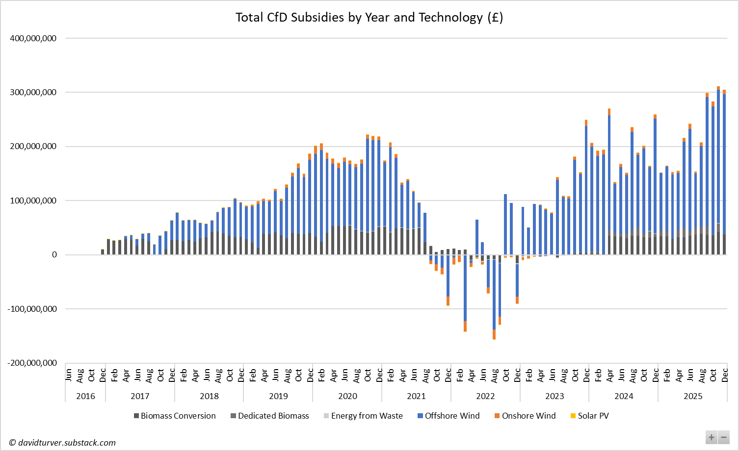 Lords bear no risk: The CfD system guarantees wind farm operators a fixed 'strike price' for 15 years, indexed to inflation. When wholesale prices fall, consumers pay the difference. When prices rise, operators pay back—but this has been rare. Lords profit regardless; serfs absorb all volatility. [Click on Image to Enlarge the CfD Payments Table]